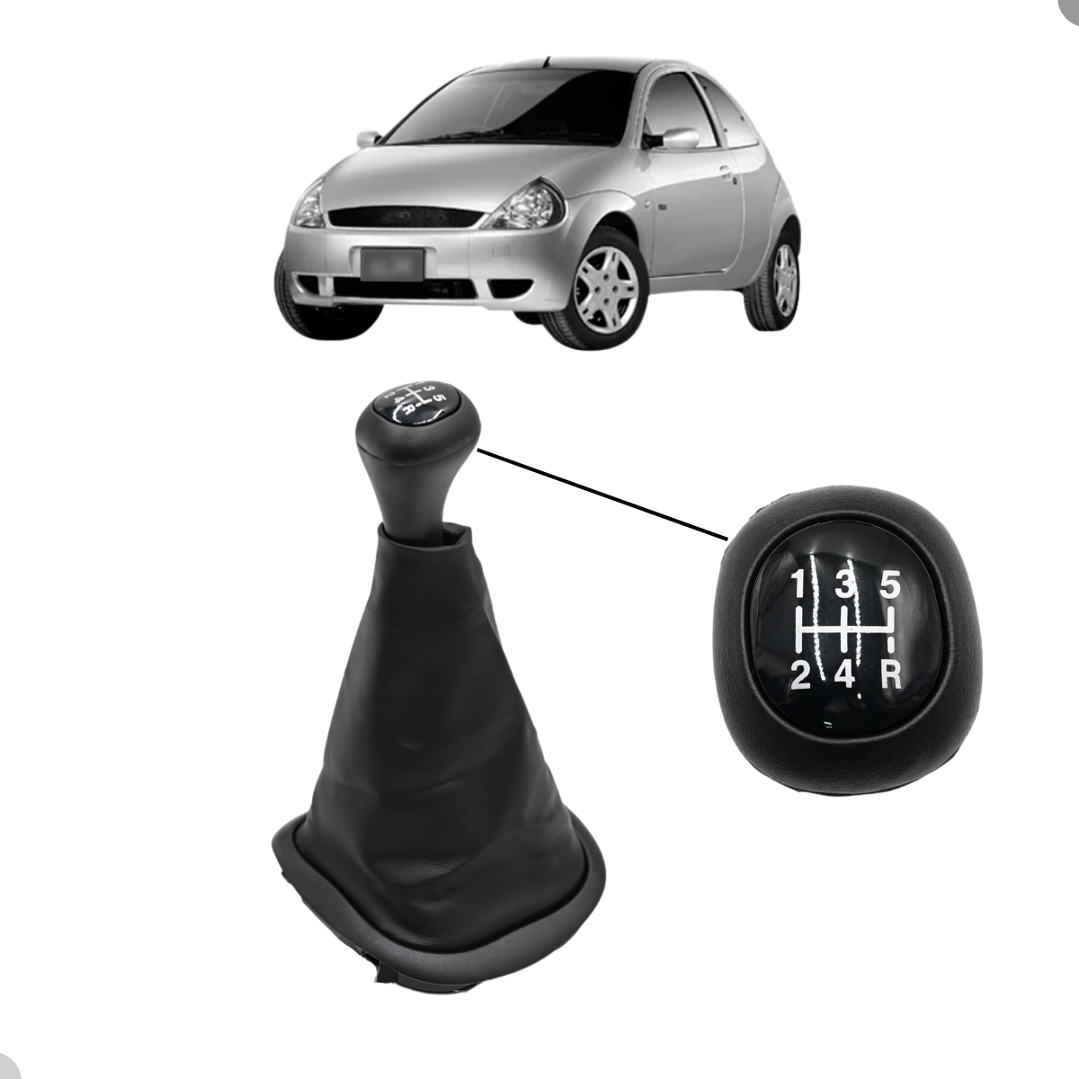 Coifa de Câmbio com Manopla Ford Ka 2000 2001 2002 2003 2004 2005 2006 2007 em Courvin Preto com Base e Bola com Lente Preta