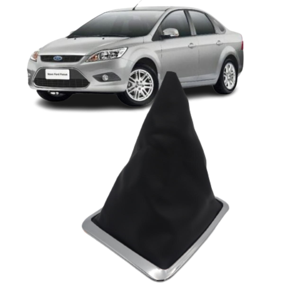 Coifa de Câmbio Focus Aro Cromado Com Base De Encaixe - Preta
