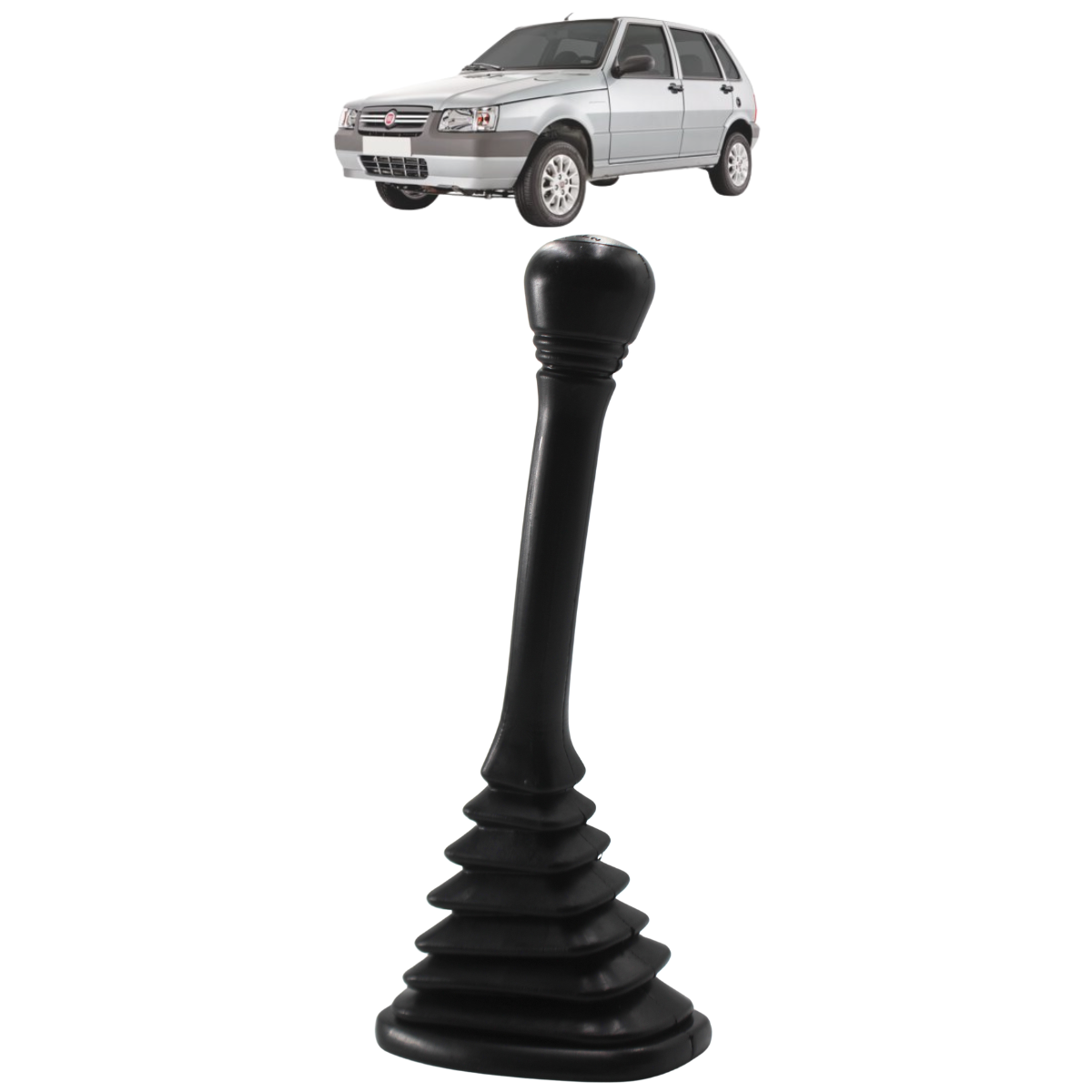 Coifa de Câmbio com Manopla Sanfonada Uno Mille em Borracha Preta com Bola Preta Longa