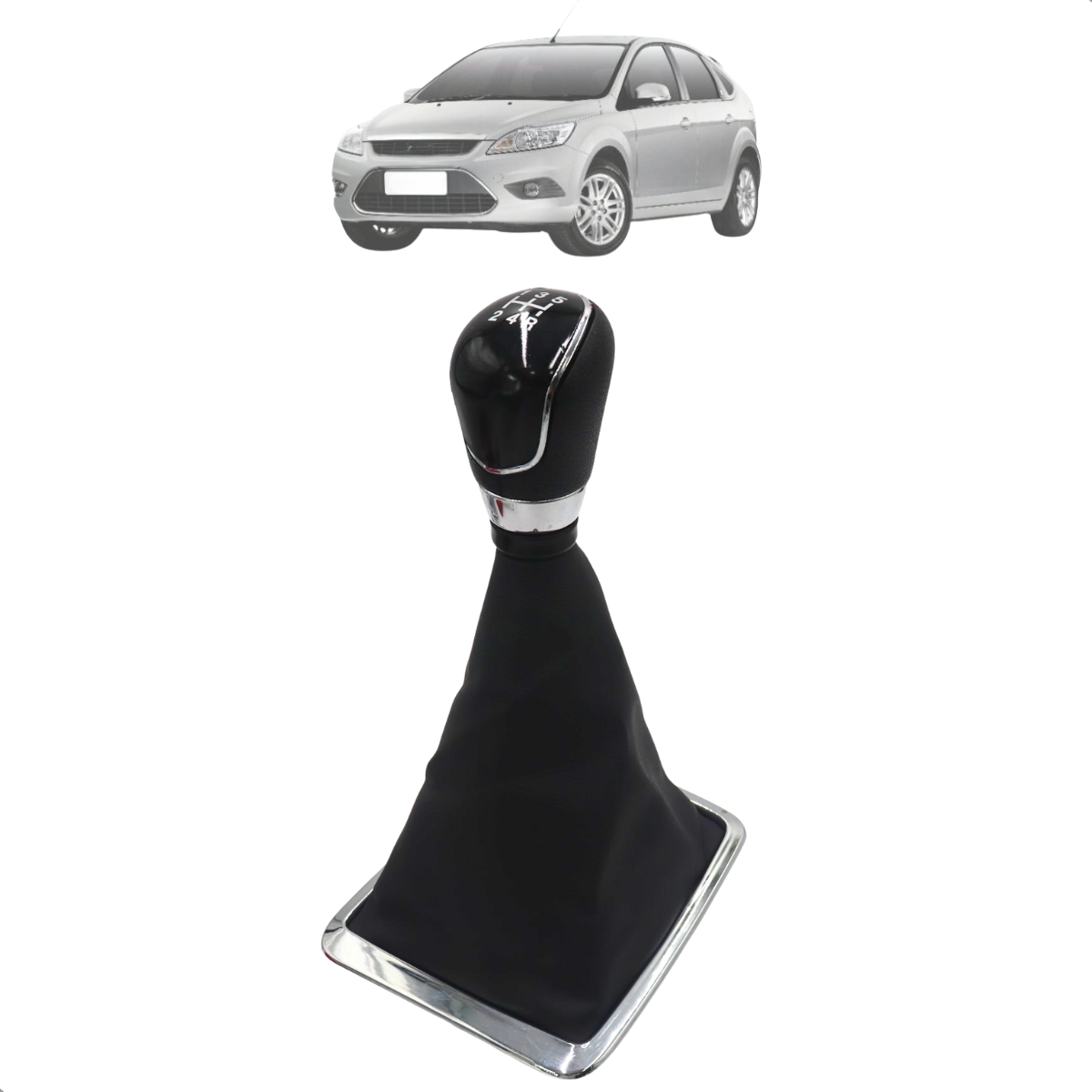Coifa Bola de Câmbio Focus 2009 A 2013 Aro Cromado Com Base de Encaixe - Preta ou Prata