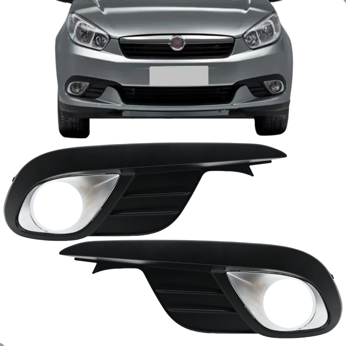 Par Grade Moldura Do Farol De Milha Grand Siena Com Furo (Aro Cromado)