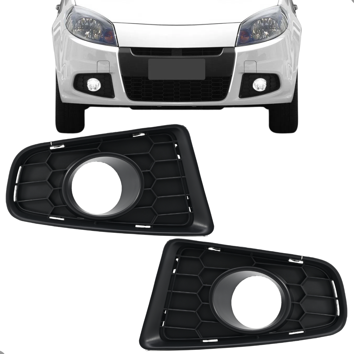 Par Grade Friso Preto Frontal Sandero Com Furo Para Milha