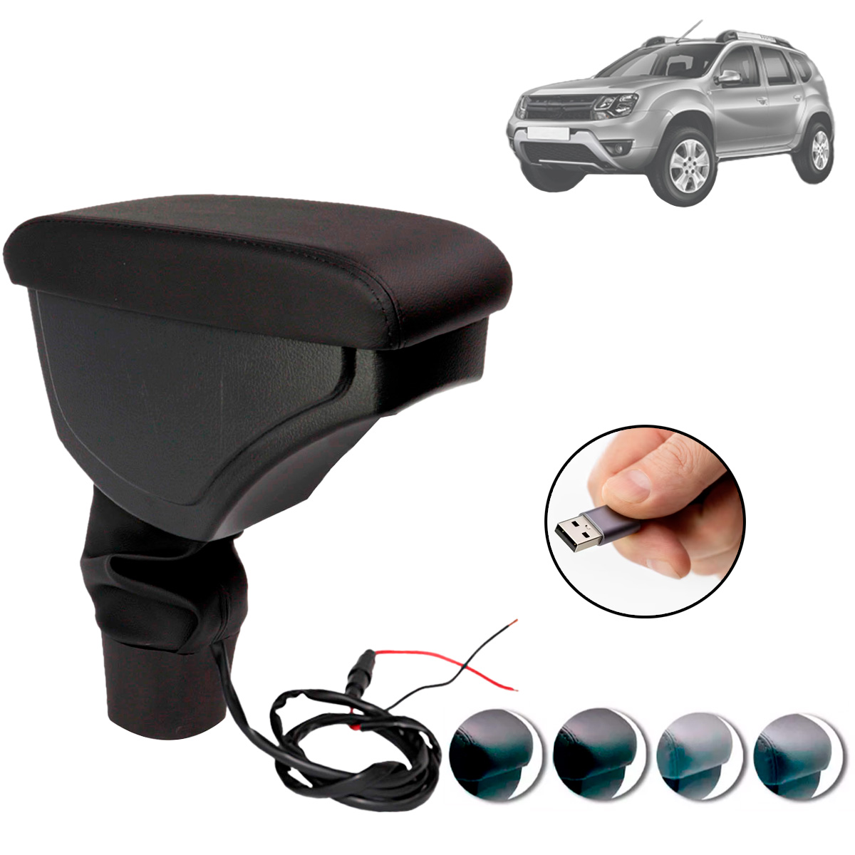 Apoio de Braço com Porta Objetos e Entrada USB Duster/ Oroch em Couro Sintético