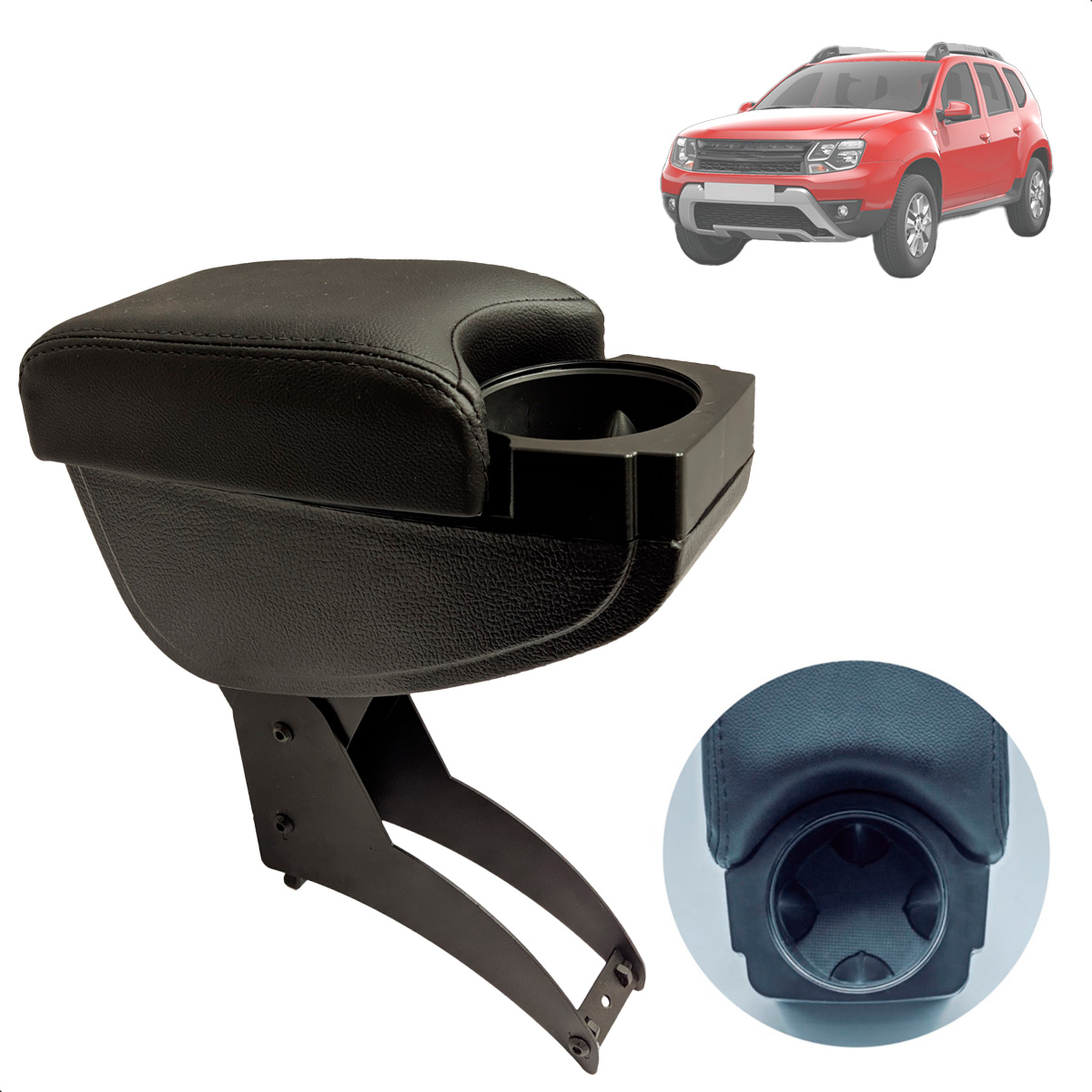 Apoio de Braço Duster 11 12 13 14 15 16 17 18 19 Duster Oroch 15 16 17 18 19 Rebatível com Porta Objetos Adaptação Freio de Mão Couro Ecológico Cinza Grafite e Preto