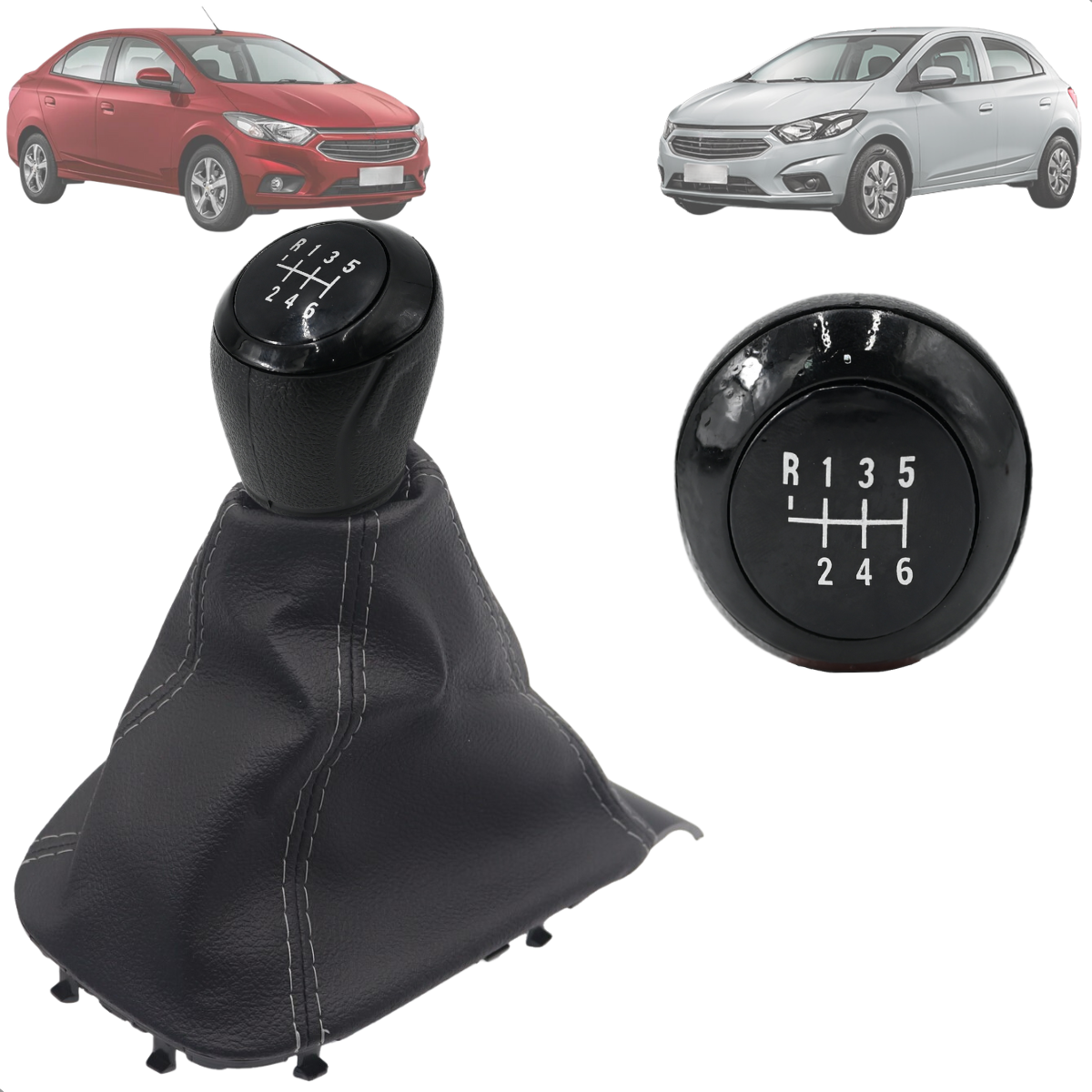 Manopla de Câmbio + Coifa de Câmbio Chevrolet Onix Prisma 2016 2017 2018 2019 2020 com 6 Marchas Ré para Frente