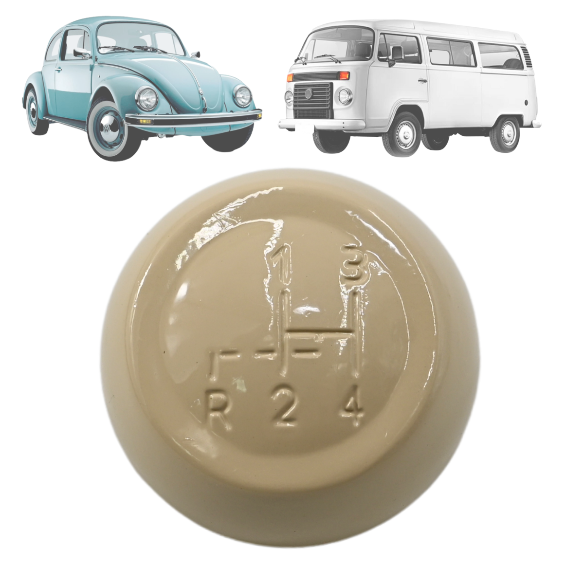 Manopla Bola De Cambio 4 Marchas Brasilia Fusca Karmann Ghia Kombi Bege 12MM