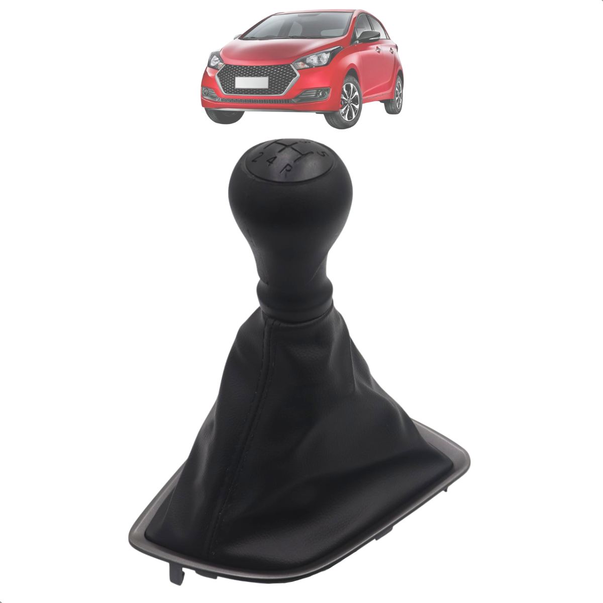 Coifa de Câmbio com Manopla HB20 Hatch 2012 A 2020 HB20S Sedan 2013 A 2020 Motor 1.0 em Courvin Preto com Base Cinza e Bola Preta com Lente Cinza ou Preta