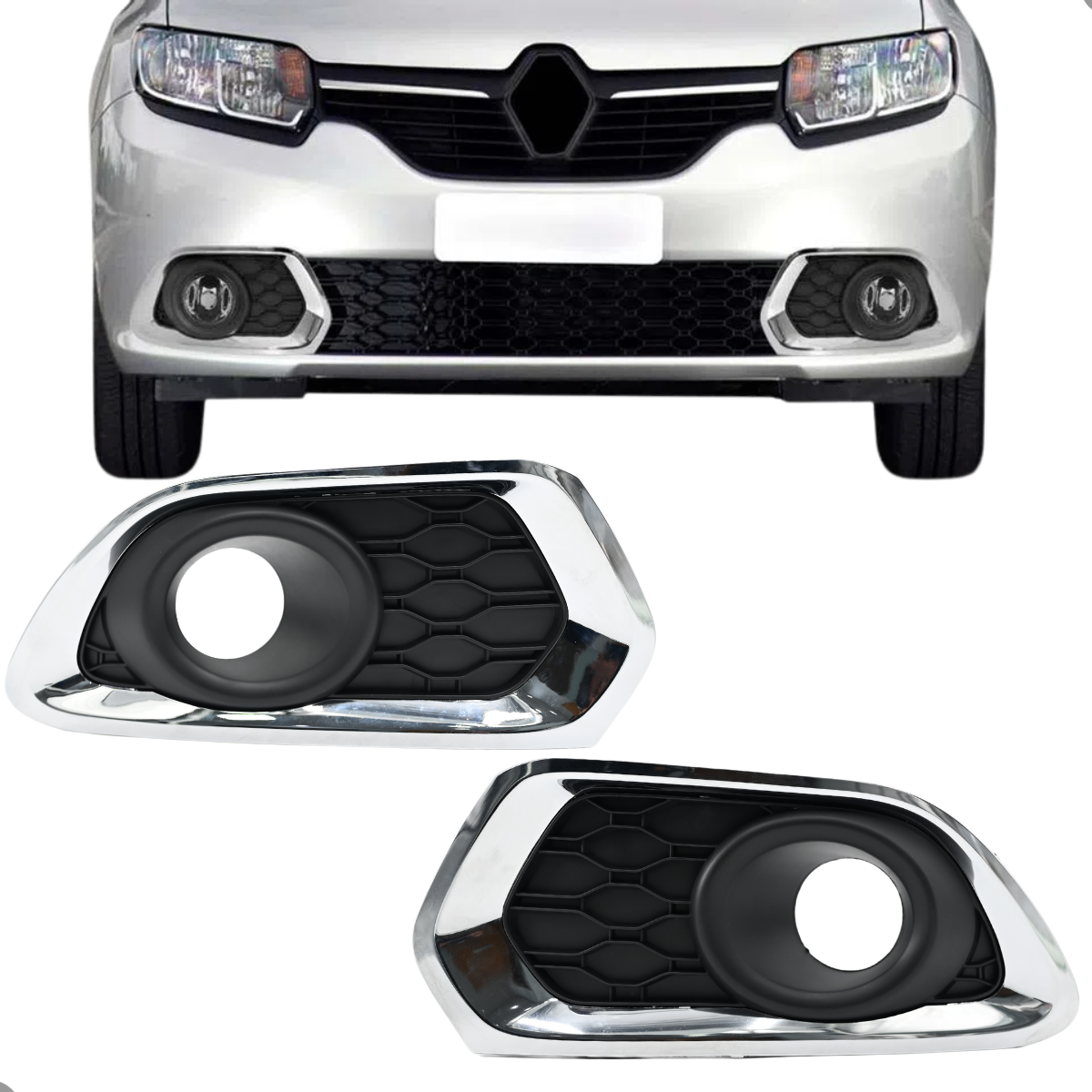 Par Grade Moldura Farol Milha Sandero Com Furo (Preta com Friso Cromado)